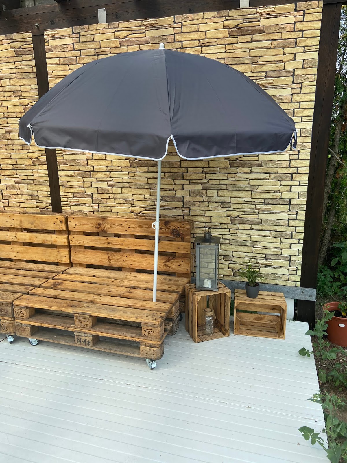 Der Durchmesser der Stange beträgt dabei 22/25mm. Der Bezug des Schirms ist in einem schlichten grau gehalten, was super zu meiner Lounge passt. Er besteht aus 100% Polyester. Mit Hilfe eines Rotationsgelenks kann man den Schirm abknicken und genau nach der Sonne ausrichten. Am Anfang ging diese Funktion sehr schwer. Ansonsten ist er sehr schnell auf-, und abgebaut und kann in der mitgelieferten Folie gut verstaut werden.