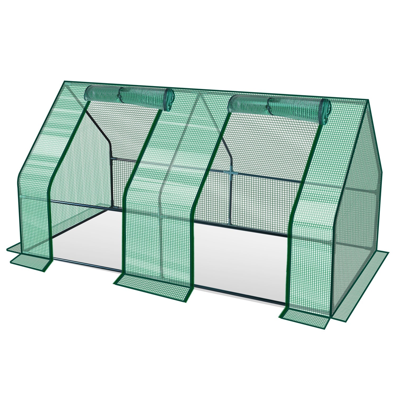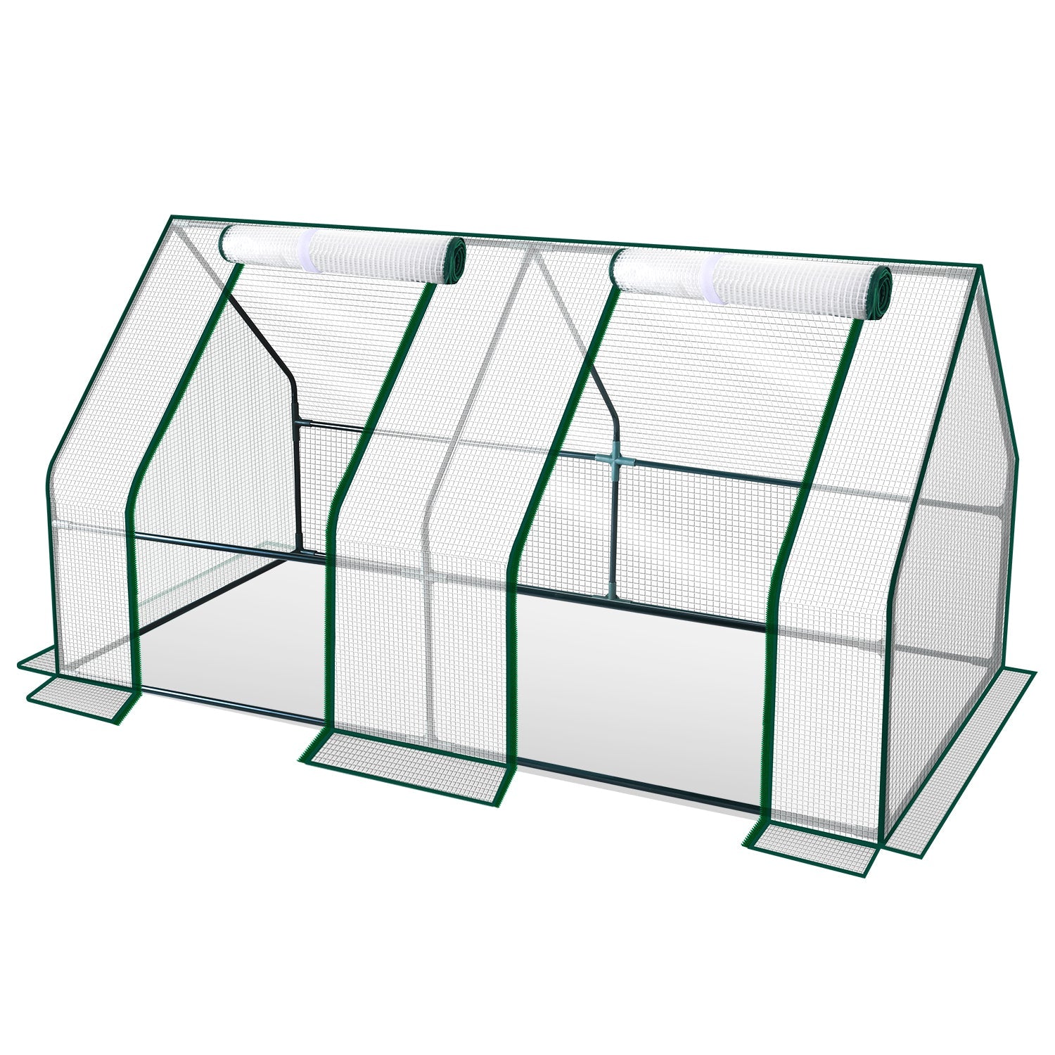 Stabiler Rahmen: Der 16 mm dicke, lackierte Stahlrahmen des Kleingewächshauses ist rostfrei und sorgt für eine hohe Stabilität. Das geneigte Dachdesign gewährleistet eine effiziente Entwässerung und verhindert die Ansammlung von Wasser.