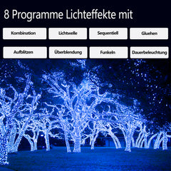 🎄⭐8 Modi: 1. Kombination 2. Lichtwelle 3. Sequenz 4. Beleuchtung 5. Blitz 6. Ein- und Ausblenden 7.Funkeln 8. Kontinuierliche Beleuchtung. Sie können den gewünschten Modus wählen.