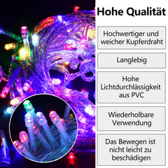 🎄⭐Verträumte Atmosphäre: Länge: 10 /20/30/100/200 Meter. Anzahl der LEDS: 100/200/300/400/500/600/1000 Bunt LEDs. Diese LED-Kette eignet sich ideal für Weihnachtsbeleuchtung, Gartendekoration, Weihnachtsbaumbeleuchtung oder Balkonbeleuchtung. Mit der Kette können Sie in der Nacht eine warme und charmante Atmosphäre für Ihren Weihnachtsbaum,Zimmer, Terrasse, Garten, Treppe, Hochzeit, Party usw. schaffen.