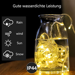 Hervorragende Wasserbeständigkeit: Die Lichterkette ist gemäß IP44 wasserdicht und kann daher im Freien verwendet werden.