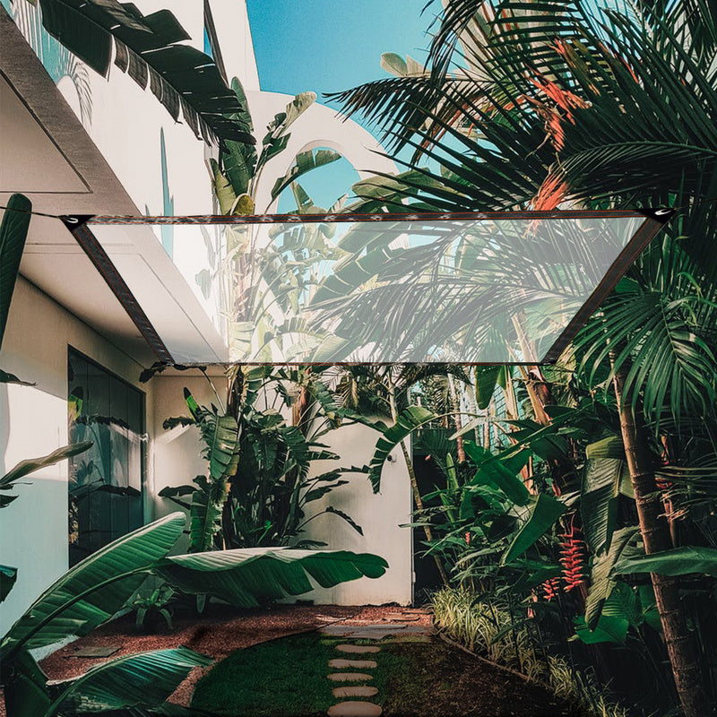 Das Mesh-Gewebe der Plane ist beidseitig laminiert, 100% wasserdicht, schimmelresistent und UV-stabil. Durch die UV-Stabilisierung wird eine Degradierung des Materials aufgrund der UV-Strahlung verlangsamt.Nahtlose, heißgesiegelte Kanten und ein umlaufendes Seil sorgen für höchste Wasserdichtigkeit und erhöhte Stabilität.