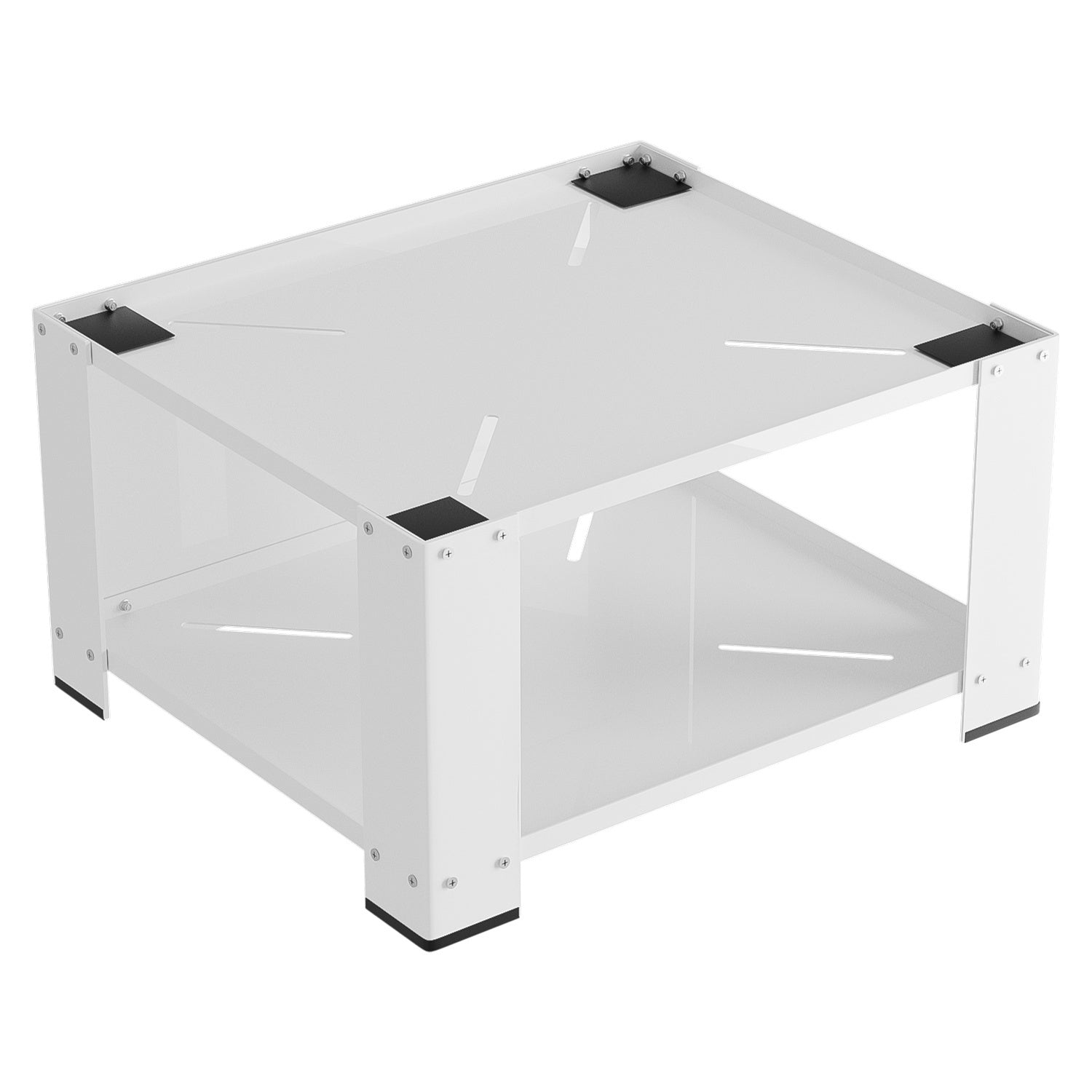 Mit Anti-Rutsch-Matten, Gummifüßen und weißen Clips.