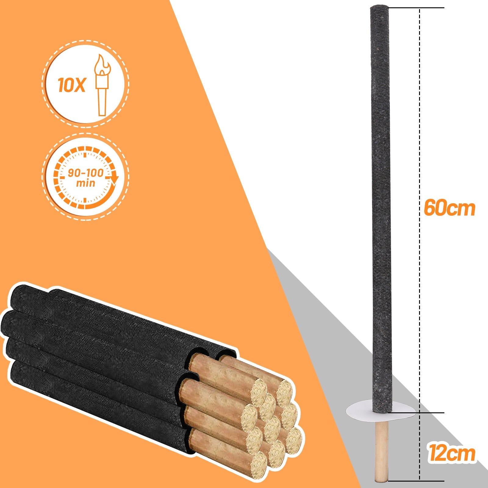 Produktgröße: 72 cm x φ3 cm (Langem Griff 12 cm, Brennkörper 60 cm)