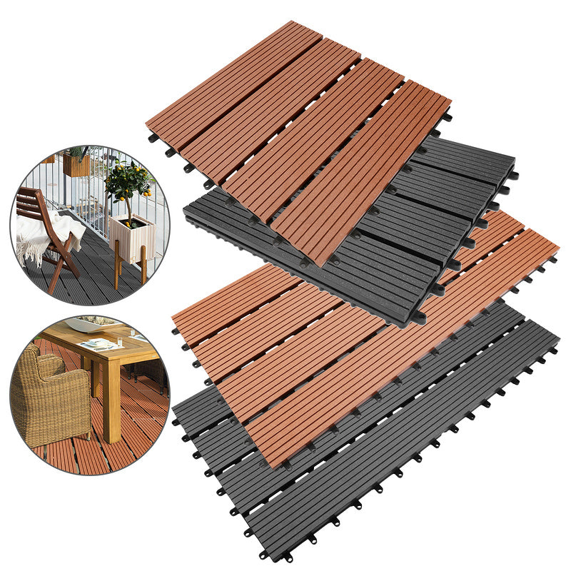 Hengda WPC Terrassenfliesen Holzfliesen Klickfliese Balkonfliesen Terrasse Kunststoff