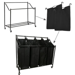 140L Wäschesammler Wäschesortierer Wäschewagen mit 4 Fächer