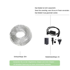 Länge: Der Lichtschlauch erreicht mit 480 hellen LEDs eine Länge von 20 Metern, was für Ihren Einsatz lang genug ist.