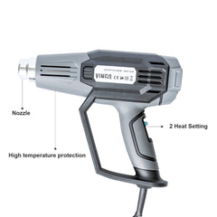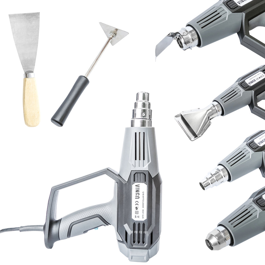 Vingo 2kW Heißluftgebläse 2 Stufen Fön Profi 4 Düse Heißluftpistole Pistole Fön Set