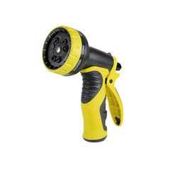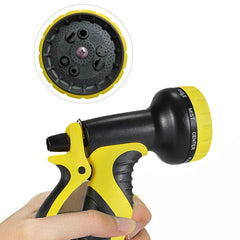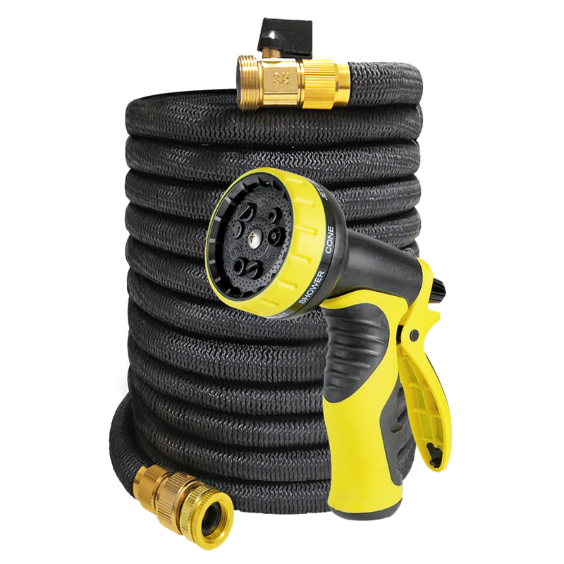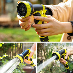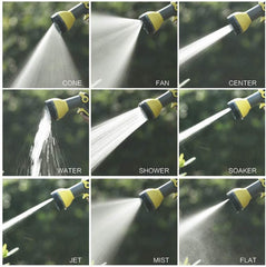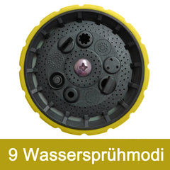 Hochflexibler Premium-Gartenschlauch, in Profi-Qualität mit nichtrostenden Messing-Verschraubungen und 3-fach Latexkern. Der Multifunktions-Sprühkopf mit 9 Funktionen (7 Sprüheinstellungen, Druckregulierung min/max, Feststellfunktion für Sprühtaster) verfügt über einen optimierten Handgriff und wurde für perfekten Halt mit Gummi überzogen. Der Wasserdruck lässt sich über einen Schieberegler direkt an der Pistole regulieren und deshalb auch zum Bewässern sensibler Pflanzen einsetzen.