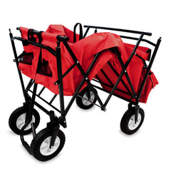 Mit nur wenigen Handgriffen lässt sich der große Bollerwagen zusammenfalten und platzsparend verstauen.