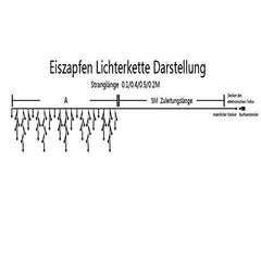 - LED Lichterkette Eisregen mit unterschiedlich langen Strängen für Innen und Außen. 5m Lichterkette plus 5m Zuleitung. Gesamtlänge: 5m