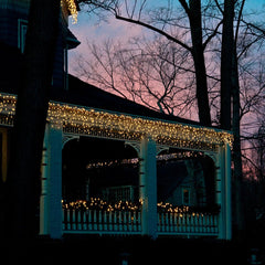 Die Lichtervorhang mit unterschiedlich langen Strängen ist in der Weihnachtszeit ein schöner Blickfang.