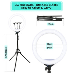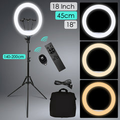 Hengda 18" LED Ringlicht Make-up 200cm Stativ Light 45cm Ringleuchte Dimmbar 18 Zoll