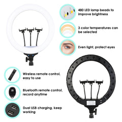 18 zoll LED Ringlicht mit 480 Stück LED-Lampenperlen.Das Ringlicht verwendet LED-Lampenperlen, keine ultraviolette und infrarote Strahlung, geringe Hitze, sicher.Schützen Sie effektiv Ihre Augen.