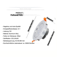 - Leistung: 5 W - Leuchtkraft: 420±15LM - Lichtfarbe: kaltweiß (6000-6500K)- Dimmbar: Nein - Lieferumfang: 20 Stück Einbaustrahler