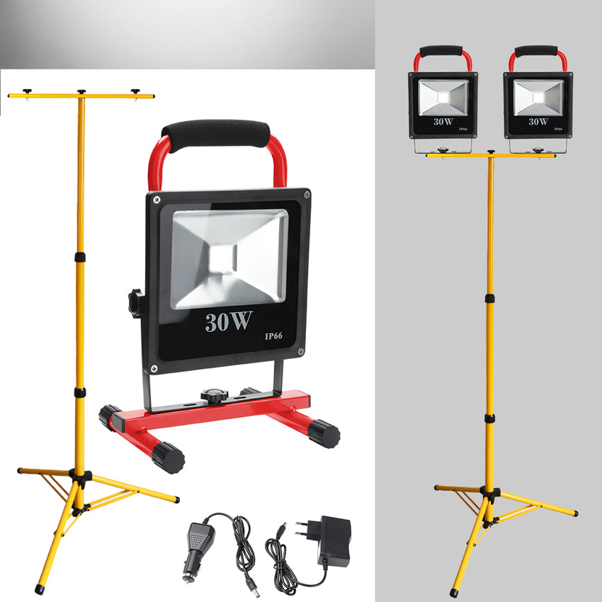 Hengda 2x 30W LED Kaltweiß Rot Akku Strahler Mit Teleskop-Stativ
