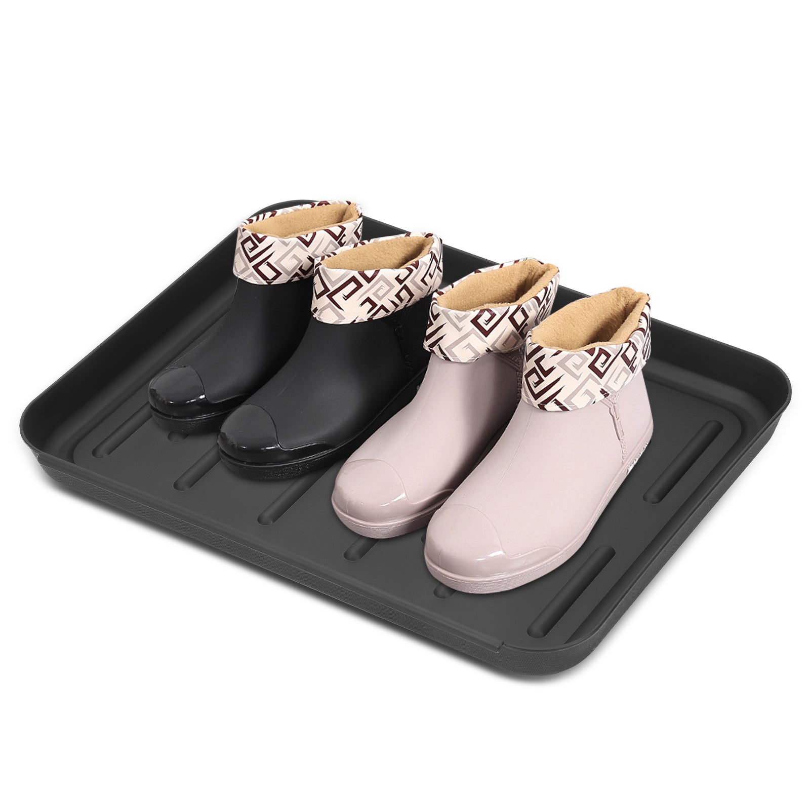 2. Aus Kunststoff: Der konturierte schwarze Schuheimer kann Schmutz aufnehmen und das Trocknen fördern und ist leicht zu reinigen