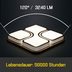 Das Design ist elegant und modisch, die 3240LM hohe Helligkeit und kaltweiße Farbtemperatur sind in dieser quadratischen LED-Deckenleuchte integriert. Die Integrierte LED kann bis zu 15.000 Mal ein/ausgeschaltet werden, und stellt die durchschnittliche Lebensdauer von 50.000 Stunden und dem Strahlungswinkel von 120 Grad dar. Ob als Wohnzimmerleuchte, Kücheleuchte,Flurlichter oder in einem Schlafzimmer oder Restaurant - jedes Zimmer kann hochwertige und helle Lichter haben.