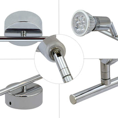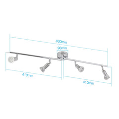 TECHNISCHE DATEN - Das beinhaltet 4 Stk. GU10 Leuchtmittel mit 3000K Farbtemperatur, je 320 Lumen und 4 Watt. Energieeffizienz: A++ ; Hohe Farbwiegdergabe: 80 Ra. Maße (L x H x B): 83 x 17 x 9cm; Maße der Unterlage: 9 x 9cm.