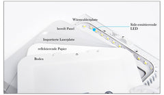 Verwendung von LCD-Hintergrundbeleuchtung und High-Power LED-Chips, einzigartiges thermisches Design, LED mit hoher Effizienz, niedrigem Lichtausfall und langer Lebensdauer (Mehr als 20,000 Stunden).