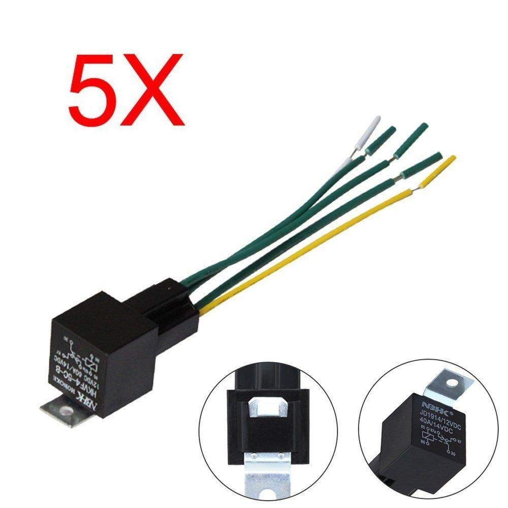 Hengda 5X 40A 12V KFZ Relais Öffner Schließer Auto Wechselrelais Schließer mit Kabelbaum
