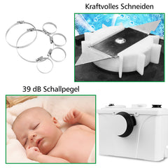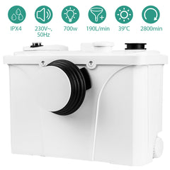 Hengda 700W Hebeanlage, 190L/min Schmutzwasserpumpen mit niedrigem Geräusch (39dB), Kleinhebeanlage, 4 in 1 Schmutzwasserpumpen