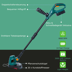 Hengda Akku Rasentrimmer ComfortCut Li-18/23R inkl. Akku 20V 2,0 Ah & Ladegerät GS. CE
