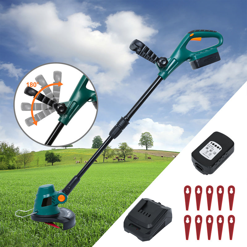▲5. Lieferumfang - 1x BMOT Rasentrimmer, 1 x Lithiumbatterie(20V / 2Ah), 1x Schnellladegerät, 20 x Kunststoffmesser.
