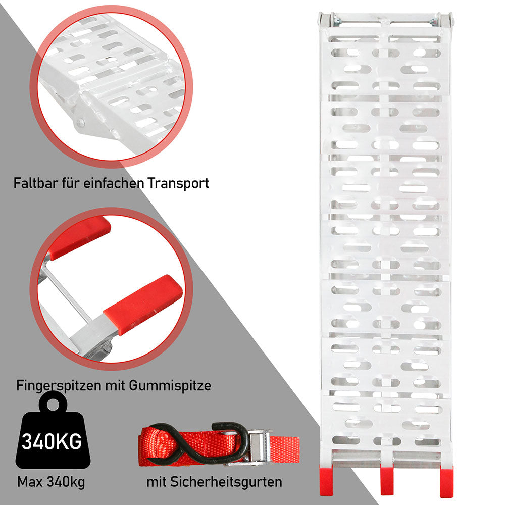 🏍【Maximale Tragfähigkeit】1 Verladerampe's für eine maximale Last von 340 kg, wiegt nur 7,2 kg, ideal für Motorräder, Roller, Quads, Rasenmäher, sehr robust und leicht zu bewegen.
