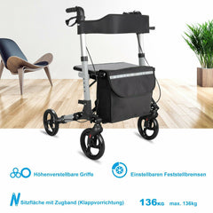Mit dem leichten Aluminium-Rollator erhalten Menschen mit körperlichen Beeinträchtigungen eine wunderbare Unterstützung beim Laufen. Ganz gleich, ob Zuhause oder unterwegs, die Gehilfe bringt Ihnen deutliche Erleichterung beim Vorankommen und sorgt für zusätzliche Sicherheit. Sie können sich beim Laufen festhalten und abstützen. Sollte die Kraft beim Weg zum Bäcker oder Supermarkt nachlassen, nehmen Sie einfach auf dem Sitz Platz und ruhen sich eine Weile aus. Die abnehmbare Einkaufstasche erspart Ihnen das Schleppen von Einkäufen oder anderem Gepäck. Sie sind deutlich mobiler und gewinnen mehr Freiheit bei der Bewältigung Ihres Alltags. So sind Sie nicht immer auf die Hilfe von anderen angewiesen.