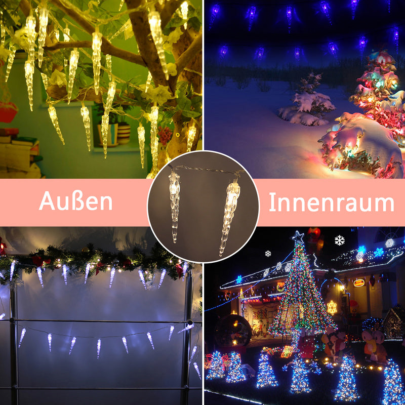 【Die Eiszapfen Lichterkette】Ob am weihnachtsdeko Baum, an weihnachtsbeleuchtung Fenster, an weihnachtsdeko Tür, Balkon,im Garten oder an der Garage - die LED Eiszapfen Fensterbeleuchtung ist ein echter Hingucker und sorgt für ein richtiges Wintergefühl und christmas decorations. Lassen Sie Ihrer Kreativität in freien Lauf.