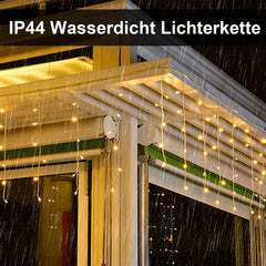 【8 verschiedene Leuchtmodi】vom einfachen Blinken, über die „Eisregen“- icicle lights Funktion, bis zum Dauerbeleuchtung sorgen mit dieser Weihnachtsdeko für eine Menge „Leucht-Spaß“. Durch die IP44-Schutzklasse ist die Weihnachtsbeleuchtung neben dem Innenbereich auch für den Schmuck Ihrer Weihnachtsbeleuchtung von außen geeignet und ist somit auch spritzwassergeschützt.