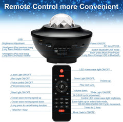 - [Sternprojektor] Der Projektor verfügt über dynamische Meereswellen und Stern in 10 Farben. Sie können die beiden Modi gleichzeitig / getrennt einschalten. In einem Raum von 15 bis 50 m² kann die 360 Grad drehbare Projektionslampe ihre Licht an die Decke oder Wand projizieren, sodass Sie sich wie am Sternenhimmel fühlen.