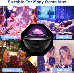 - [Geschenke für Kinder und Freunde] Sternprojektoren eignen sich für Geburtstage, Partys, Weihnachten, Halloween und andere Feste. Wenn wir uns zu Hause, in KTV, in der Bar, auf der Tanzfläche, im Bankettsaal und an anderen Orten treffen, kann Sternenlichter eine romantische und interessante Atmosphäre für uns anbieten. Das Nachtlicht kann auch das Kind beruhigen und eine entspannende Schlafumgebung für das Kind schaffen.