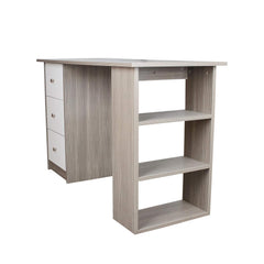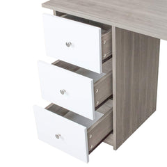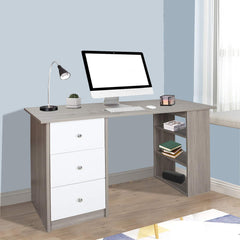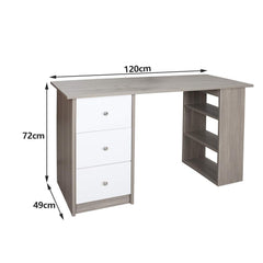 Hengda Schreibtisch Computertisch Arbeitstisch Bürotisch PC Tisch, mit DREI Fächer und DREI Schubladen, für Familie, Büro (Weiß - grau) 120 x 49 x 72 cm
