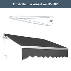 Bietet Schatten mit Anpassbarem Winkel: Ausgestattet mit einer großen Unterstellfläche wird die Markise effektiv davor schützen, der Sonne ausgesetzt zu sein. Neigungswinkel bis 30 Grad, sodass sie sich an Ihre Bedürfnisse nach Schatten anpassen kann.