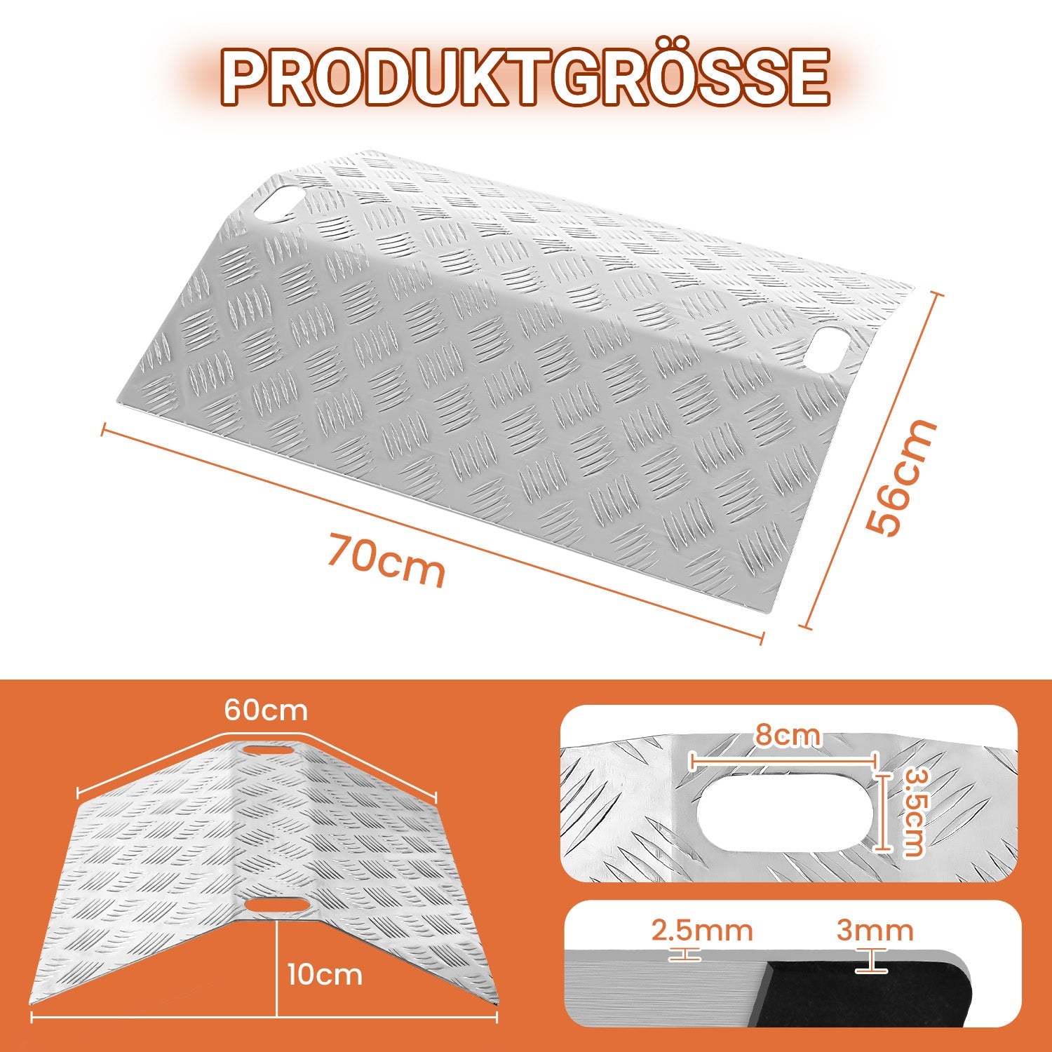 👍 HOCHWERTIGES MATERIAL: Die Schwellenrampe ist aus hochwertigem Aluminiumlegierungsmaterial gefertigt, das außergewöhnliche Haltbarkeit und Stabilität bietet. Selbst bei langfristiger und häufiger Nutzung bleibt die Schwellenbrücke in bestem Zustand. Das Aluminium schützt vor Rost und Korrosion, widersteht rauen Wetterbedingungen und bietet Ihnen langanhaltende Zuverlässigkeit.