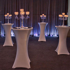 Die dekorative Stehtischhusse verleiht Ihrem Stehtisch mit runder Tischplatte ein elegantes Aussehen auf jedem festlichen Anlass.Die elegante Optik passt ideal für Feste, Empfänge und Jubiläen.