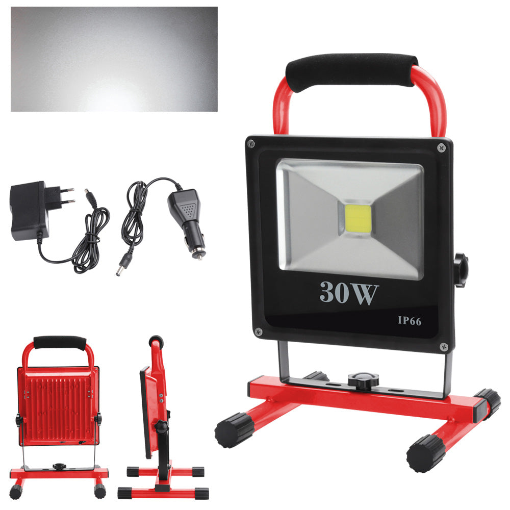LED Akku Fluter Baustrahler Arbeitsleuchte Werkstattlampen Campinglaterne 30W Kaltweiß(Rot)