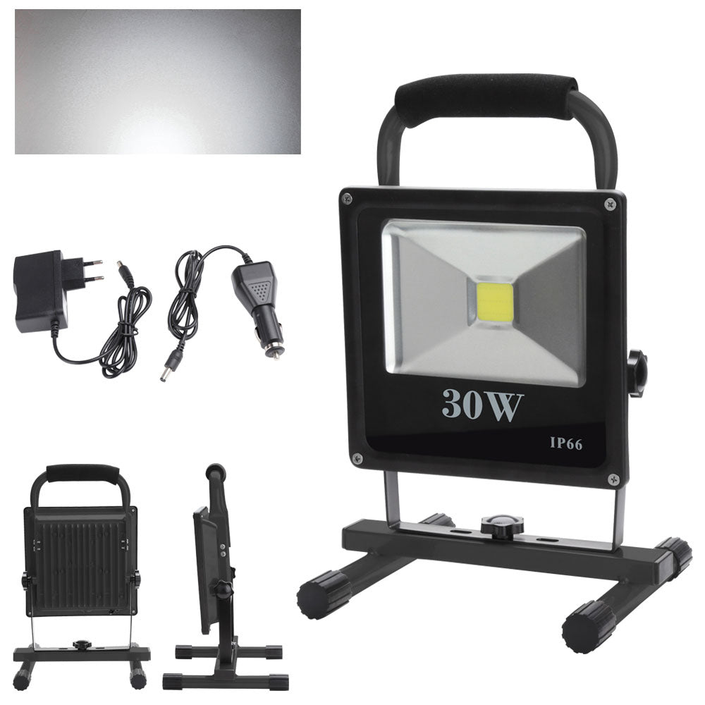 LED Werkstattlampen Akku Außen Strahler Baustrahler 30W Kaltweiß(Schwarz)