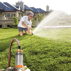 Tiefbrunnenpumpen sind höchst effiziente Tauchdruckpumpen. Sie ist mit 20m Anschlusskabel ausgestattet und ideal für den Einsatz in schmalen Brunnen, Schächten und Zisternen. Der Einsatz ist energiesparend und umweltfreundlich. Die leistungsstarke und geräuschlose Tiefbrunnenpumpe kann aus bis zu 19 Metern Tiefe das Wasser nach oben fördern. Das Gehäuse aus Edelstahl ist geeignet für den Einsatz unter Wasser.