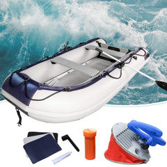 Es ist beständig gegen Salzwasserkorrosion und intensive UV-Strahlung. Schlauchboot verfügt über 3 aufblasbare Anschlüsse, die mit der mitgelieferten Pumpe aufgeblasen werden können.