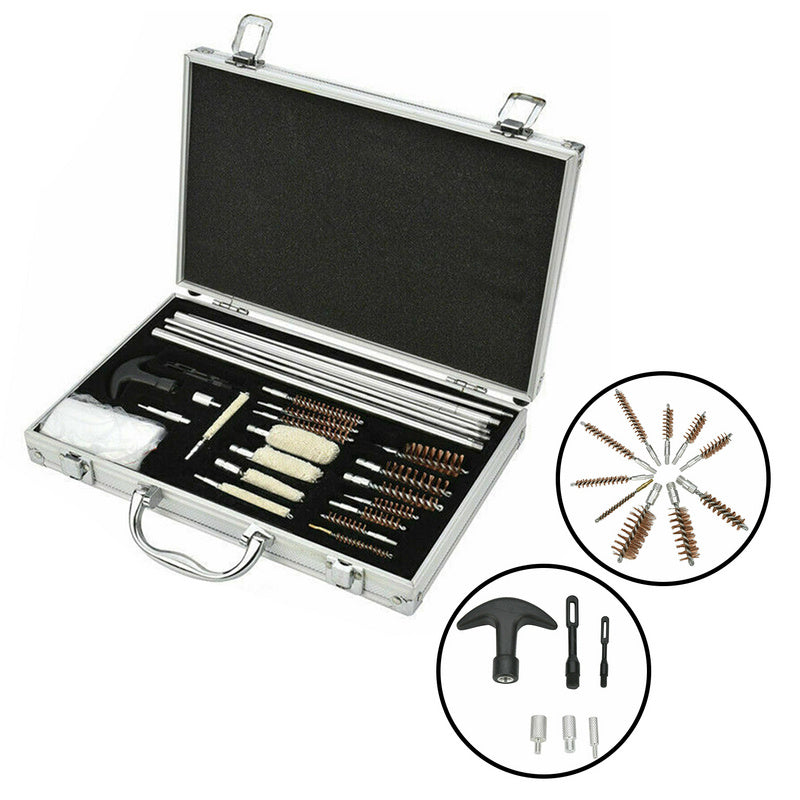 Das Waffenreinigungsset ist ein absolutes Muss für begeisterten Jäger. Das Waffenreinigungsset ist zur Reinigung von Flinten, Luftgewehren und Pistolen entwickelt und verfügt über hochwertigen Teile zum Reinigen aller Gewehrarten und -größen. Die perfekte Lösung zur Waffenwartung - mit diesem Set können Sie schnell Ihre Gewehre reinigen.