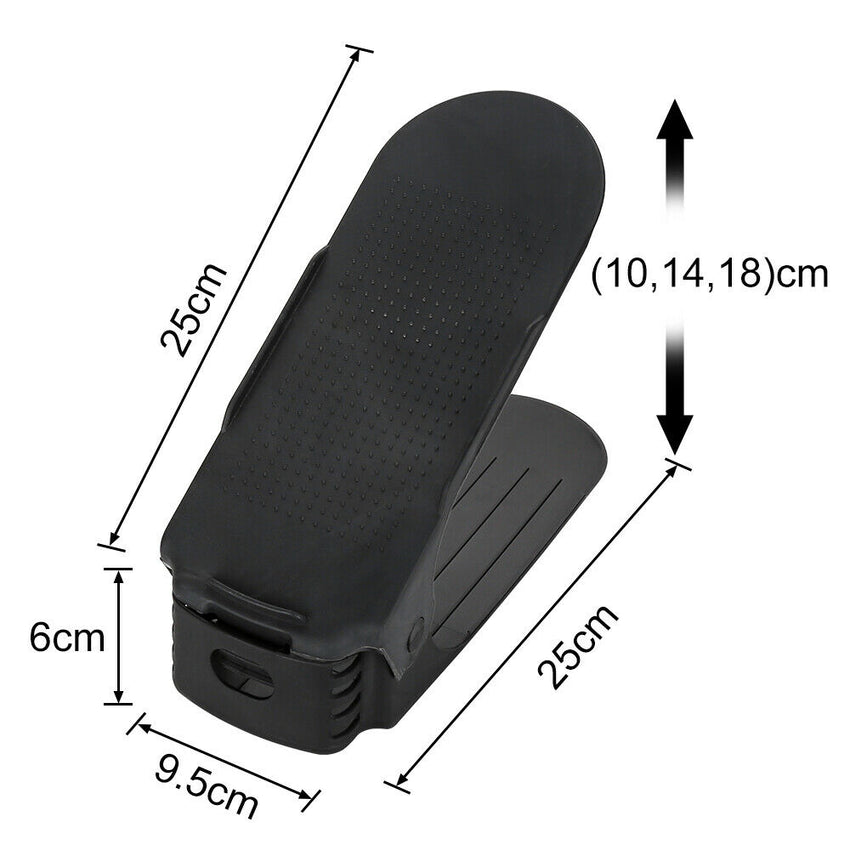 Diese Verstellbarer Schuhhalter sorgen in jedem Haushalt für aufgeräumte Flächen. Vorbei sind die Zeiten, als sich Schuhpaare über den gesamten Fußboden ausgebreitet haben. Endlich vorbei auch die Momente, dass überfüllte Schränke zu schlechter Laune führen oder ein Schuh den anderen unweigerlich verschmutzt hat. Diese Verstellbarer Schuhhalter besitzt eine rutschfeste Oberfläche und lässt sich unkompliziert paarweise stapeln.