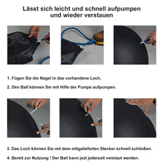 √ Bitte achten Sie darauf, den Ball zu ca. 80% aufzublasen. Dies kann den Ball flexibler und leichter zu halten machen.