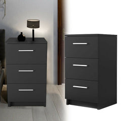 Wolketon Schwarz Nachttisch mit 3 Schubladen Sideboard Nachtschrank 38x35x66cm