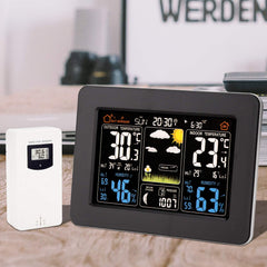 kurzer Blick auf das Farbdisplay der Wetterstation, um ein detailliertes Bild der zukünftigen Wettersituation und vielen weiteren Daten zu erhalten. Wetterstation macht es Ihnen leichter, das Wetter zu kennen und einen bequemeren und angenehmeren Alltag zu erhalten.