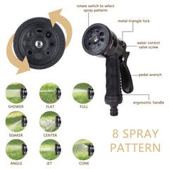 - Breites Einsatzspektrum -Die drehbare Düse verfügt über 8 Sprühmodi. Sie können es für Gartenarbeiten, Rasen-, Pflanzen- und Buschbewässerung, Autowaschen, Haustierreinigung, Glasreinigung usw. verwenden.