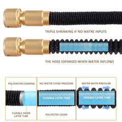 • Flexibeles Design -Sobald das Wasser durchfließt, dehnt sich der Flexischlauch auf das Dreifache seiner ursprünglichen Länge aus. Wird das Wasser abgestellt, entwässert er sich ganz bequem von allein und schrumpft zusammen, so dass Sie es einfach aufbewahren können, sehr platzsparend.